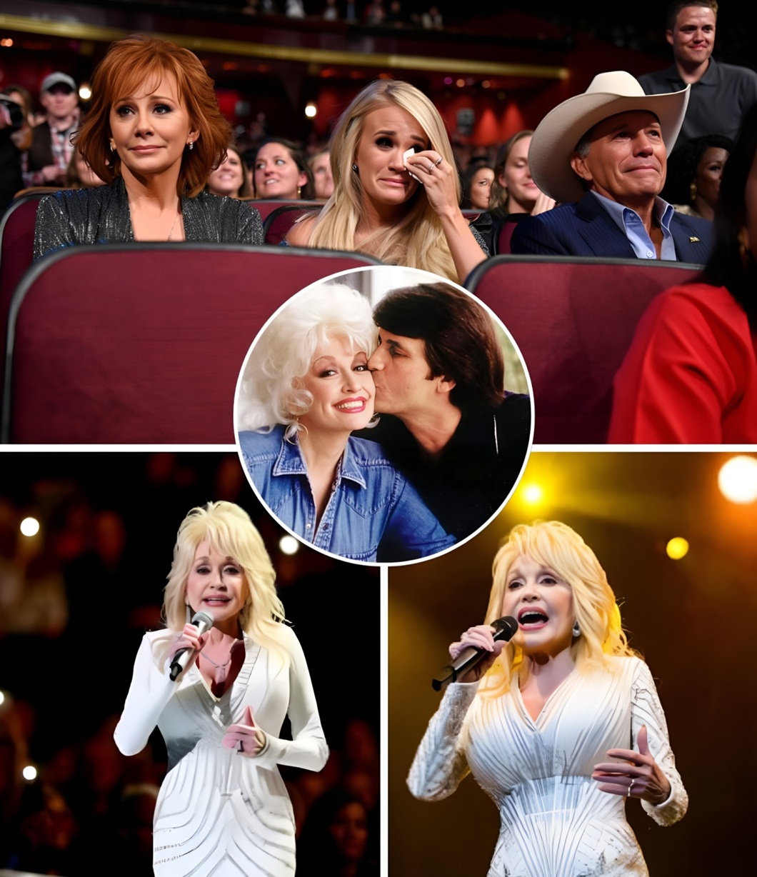The room was filled with country music’s finest—artists, storytellers, and legends who had shaped the genre across generations. Yet as Dolly’s voice rose, quivered, and finally settled into silence, even the most seasoned among them sat motionless. A stage that had moments earlier been full of chatter and applause was suddenly draped in reverence. No one dared break the spell. For in that instant, the song became larger than the singer. It became a shared prayer, one that reminded every listener of the fragility of love and the permanence of loss.