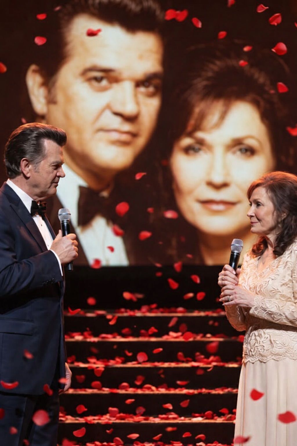 Conway came in later, carrying that familiar mix of warmth and focus. He never rushed a room. He didn’t fill space unnecessarily. He understood something many singers never quite learn—that restraint can be its own form of strength. When he stood beside Loretta, it didn’t feel like two stars sharing a spotlight. It felt like two old friends stepping into a conversation that had never really ended.