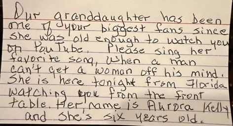 That evening was meant to be another honest show rooted in tradition, storytelling, and songcraft. What it became was a reminder of why real country music refuses to fade. Sitting right down front was a six year old girl named Aurora Kelly, who had traveled all the way from Florida with her family for one reason only — to hear her favorite song, When A Man Can’t Get A Woman Off Her Mind.