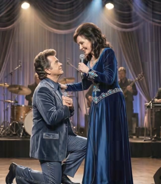 Before the audience could fully grasp what was happening, Conway stepped closer to Loretta Lynn — and then, in a gesture that no one had anticipated, lowered himself to one knee.