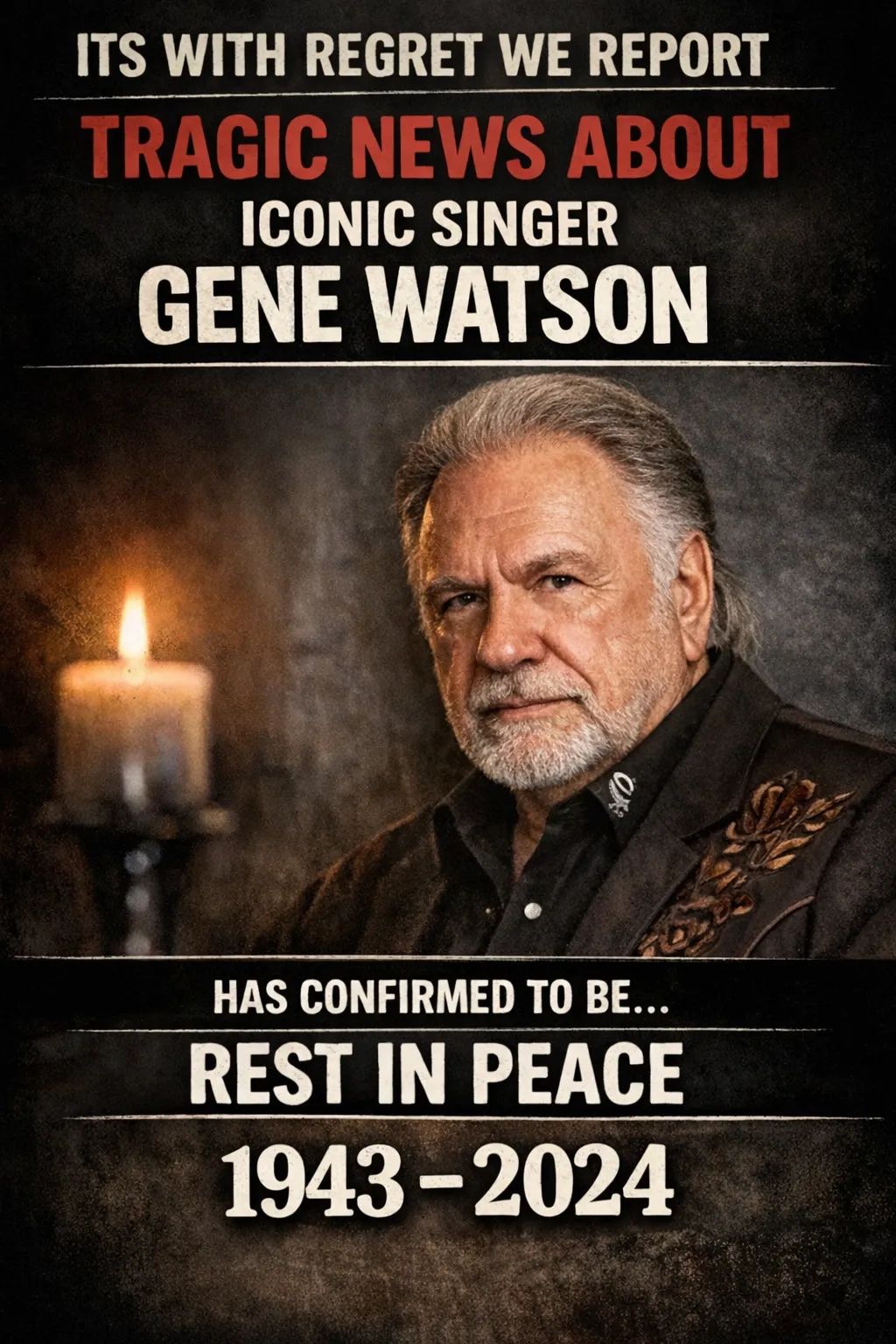 In the world of traditional country music, few headlines can stop fans in their tracks quite like the words Its With Regret We Report Tragic News About Iconic Singer Gene Watson Has Confirmed To Be. Even before the sentence is finished, longtime listeners feel a sudden tightening in their chest. It is the kind of headline that spreads quickly, traveling through social media pages, music forums, and quiet conversations among fans who grew up with the timeless voice of Gene Watson.