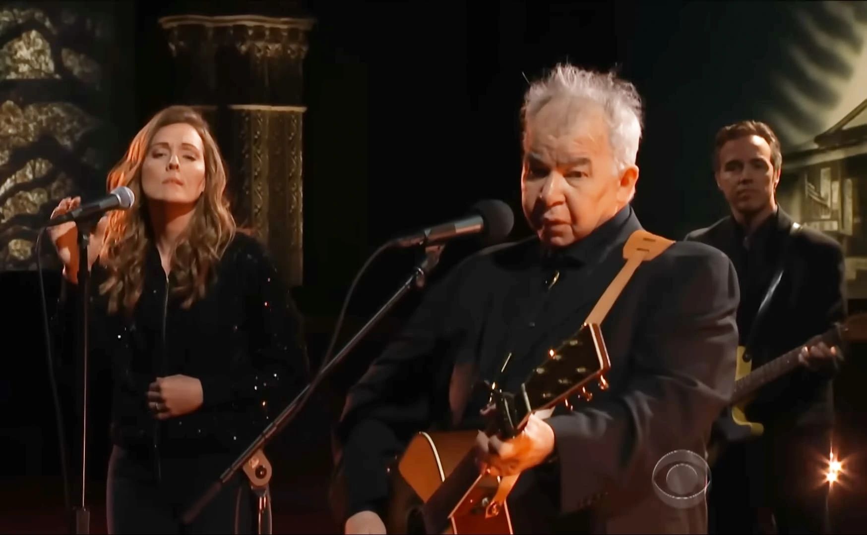 What makes this performance especially powerful is not just Prine’s presence, but the careful balance created by the voices beside him. Sturgill Simpson brings a grounded, almost meditative depth. His harmonies do not compete—they support, like a steady hand on the shoulder. Brandi Carlile, on the other hand, introduces a sense of light. Her voice rises gently, never overpowering, but illuminating the emotional core of the song.