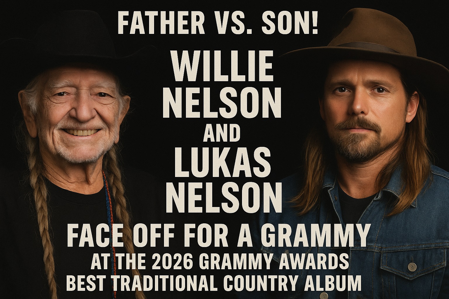 Few stories in country music carry as much poetic resonance as this one — a father and son, both torchbearers of a timeless sound, finding themselves in friendly competition on the grandest stage of all. At the 2026 Grammy Awards, the legendary Willie Nelson and his son Lukas Nelson will stand as rivals in the category of Best Traditional Country Album. It’s a rare, almost cinematic moment — two generations of artistry converging, not in conflict, but in celebration of a shared musical legacy.