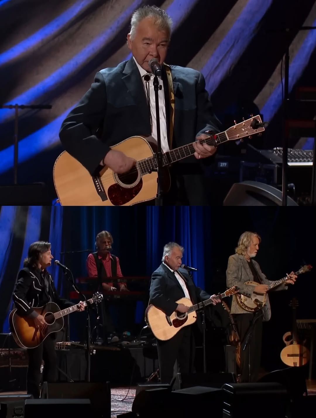 And that is where the presence of the Nitty Gritty Dirt Band becomes so essential. Their role is not to take over, but to support—to build a musical frame around Prine’s storytelling without ever overshadowing it. Their harmonies arrive like echoes of the past, soft and respectful, allowing the story to remain front and center. Together, they create something that feels less like a performance and more like a shared memory being passed from one generation to the next.