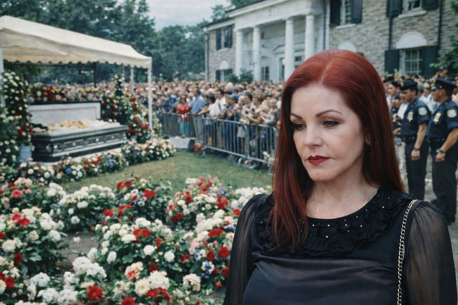 According to PRISCILLA PRESLEY, the public funeral left the family emotionally exposed. Crowds moved through the house. Strangers cried openly. The noise never stopped. The walls that once protected family memories could no longer shield their loss.