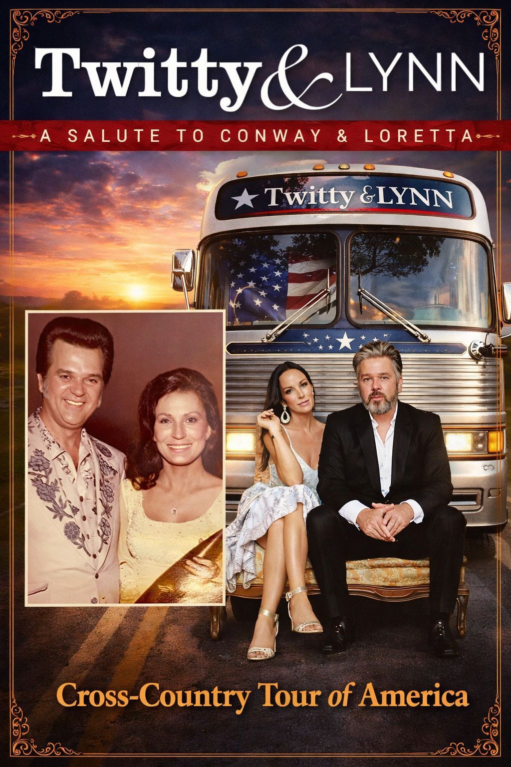 In an age where digital production and genre-blending often dominate the charts, something remarkable is quietly—and powerfully—unfolding across America. The “A Salute to Conway & Loretta” Tour is not just another nostalgic revival. It is a living, breathing tribute to two of country music’s most beloved icons, Conway Twitty and Loretta Lynn, whose timeless duets once defined an era of authenticity, emotional storytelling, and musical chemistry that felt almost sacred.