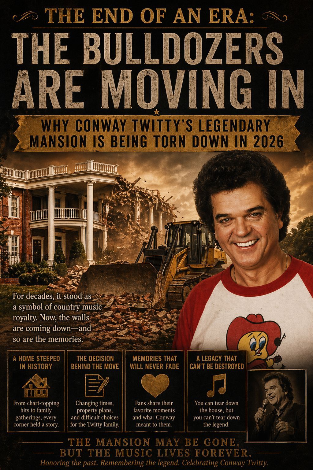 There are moments in country music history that don’t just feel like headlines—they feel like heartbreak. And for many longtime fans, this is one of them. The quiet, dignified legacy of Conway Twitty, a voice that once filled living rooms, truck radios, and late-night dance halls across America, is now facing a deeply symbolic turning point. Not through music, not through tribute—but through demolition.