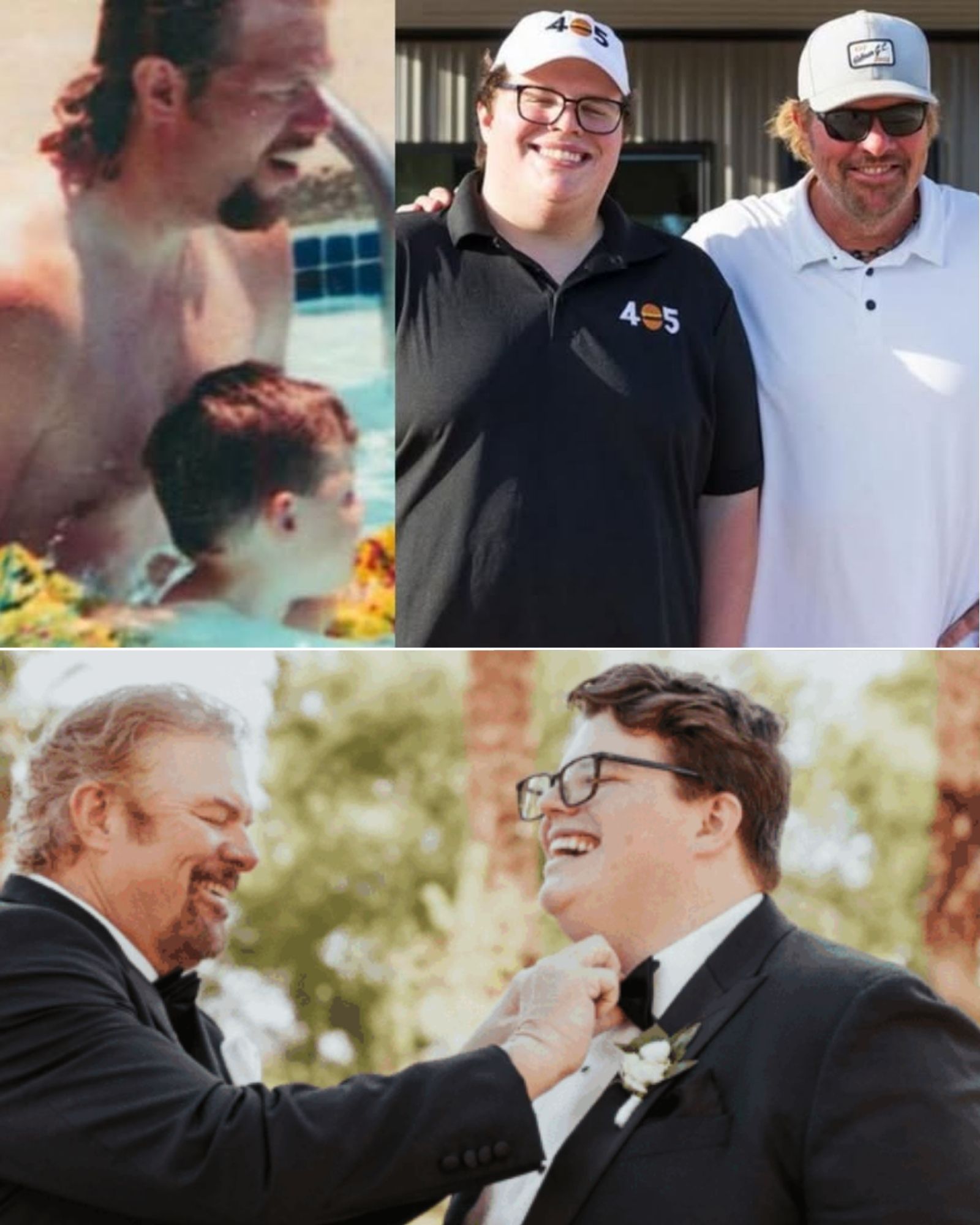 That truth found its clearest echo in Toby’s role as a father. A quiet morning photo captures it perfectly: Toby holding his son Stelen’s hand as they walk up a gentle hill. No stage, no spotlight, just a father guiding his child, step by step. It is the living embodiment of the lyric: “Hold my hand, son — you’ll never walk alone.”