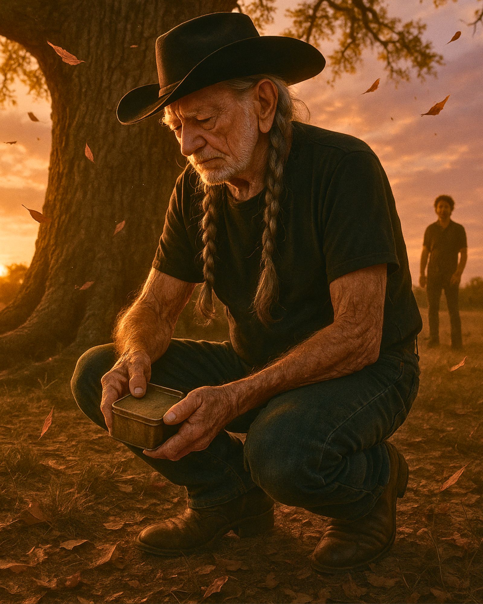 There’s a quiet legend whispered around Luck, Texas, where the wind carries more than dust — it carries memory. Folks say somewhere on Willie Nelson’s ranch, beneath the shade of an old oak that’s seen as much life as its owner, lies a tin box. Inside it, there’s no treasure, no gold — just a single tape. Unmarked. Unreleased. Untouched by time.