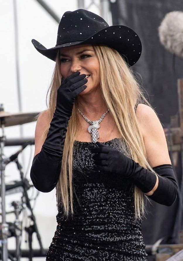 For older, more discerning fans, the giggles symbolize confidence earned through experience. This is not a newcomer nervously filling silence, but a seasoned performer comfortable enough in her legacy to let imperfections breathe. When a microphone stand refuses to cooperate or a comment slips out unexpectedly, Shania doesn’t mask it—she embraces it, often with a quick smile or a self-aware joke that invites the audience in rather than holding them at arm’s length.