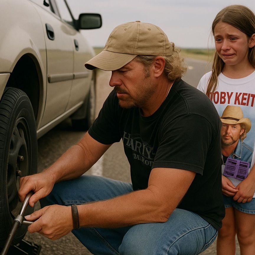 For the little girl — just ten years old and wearing a homemade Toby Keith T-shirt — it was almost too much to believe. Her hero, the same man she sang along with on the radio, was now crouched next to her truck, fixing a flat tire with his own hands. When the job was done, Toby didn’t just wave goodbye. He handed her and her dad backstage passes to his show that very night.
