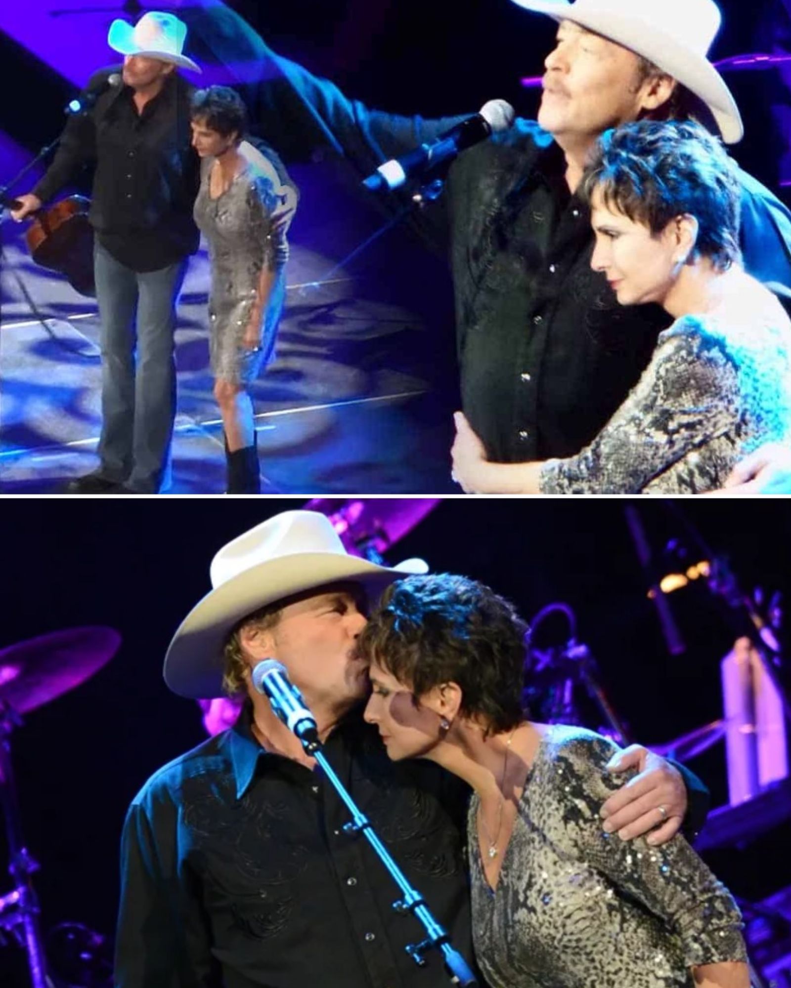 Alan didn’t open with words. He opened with sound — those unmistakable, slow-burning notes that carried echoes of “He Stopped Loving Her Today” and every other song that broke and mended hearts in equal measure. As he strummed, Nancy Jones looked up with a gentle smile, the same quiet expression she once saved for George during his best nights and his hardest ones.