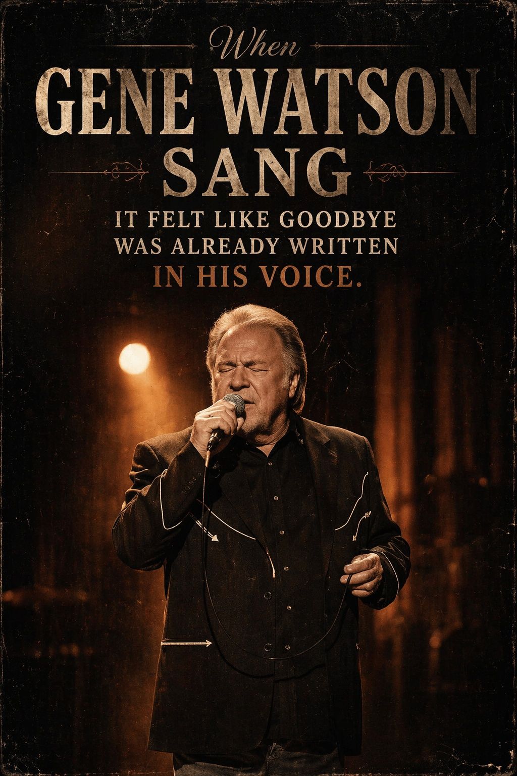 This emotional undercurrent is exactly what makes the idea behind “When Gene Watson Sang It Felt Like Goodbye Was Already Written In His Voice” so powerful. It’s not just a poetic phrase—it’s a truth that longtime listeners have felt for decades. Watson’s voice doesn’t simply deliver lyrics; it reveals them, slowly and honestly, like turning the pages of a well-worn letter.