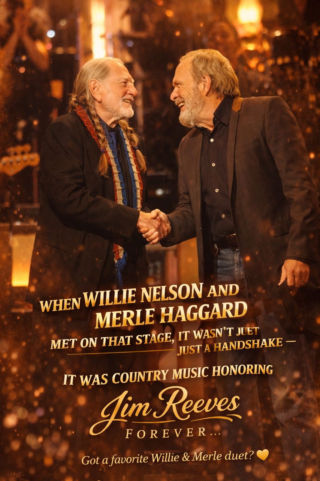 So when they met on stage, it wasn’t just two performers sharing a spotlight. It was two lifetimes of experience speaking to one another through melody and memory. The handshake—simple, almost understated—symbolized something much greater: mutual respect, shared history, and a quiet acknowledgment that they had both carried the torch of country music through changing times.